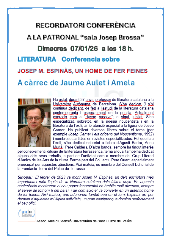 Recordatori de la conferencia del proper dimecres 15 de febrer